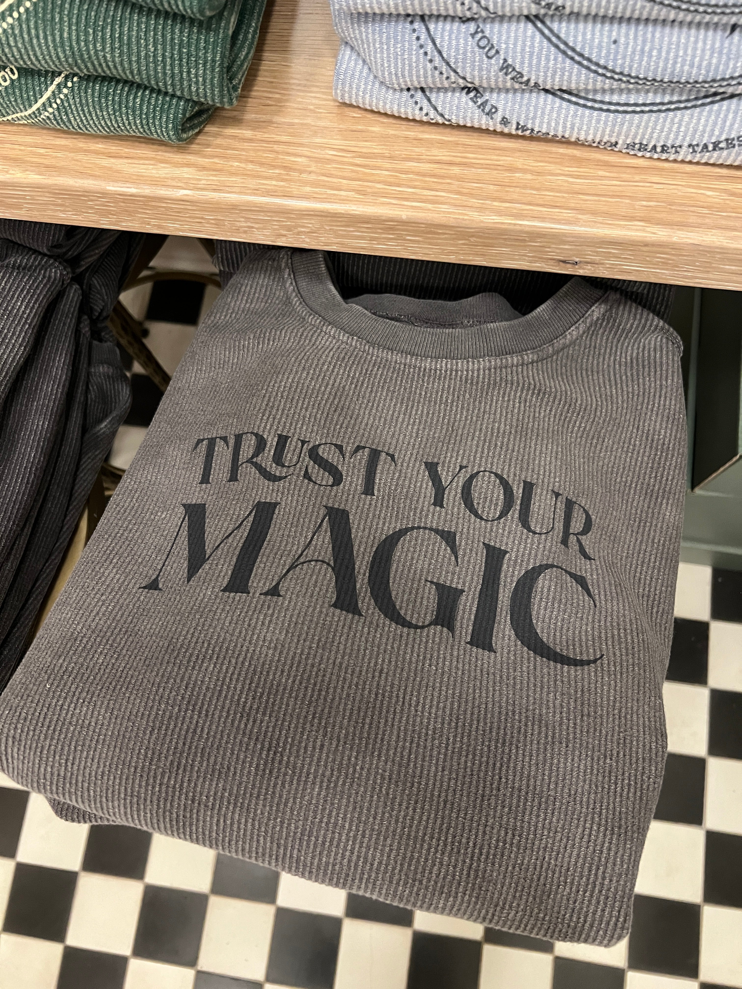 Our corded crewneck sweatshirt screenprinted with the words "Trust Your Magic", a saying that we use often around here. Meant to inspire you to lean into that inner magic that makes you uniquely you.