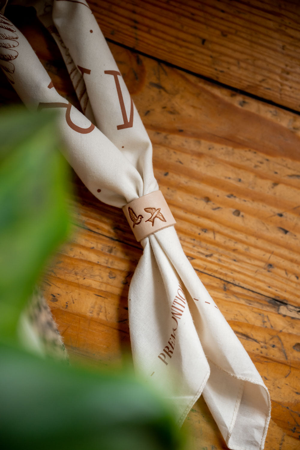 Channel your inner cowboy or cowgirl with this handmade, genuine leather bolo tie. These are the perfect complement to our hand screened bandanas. Use it to tie around your neck or on a bag.