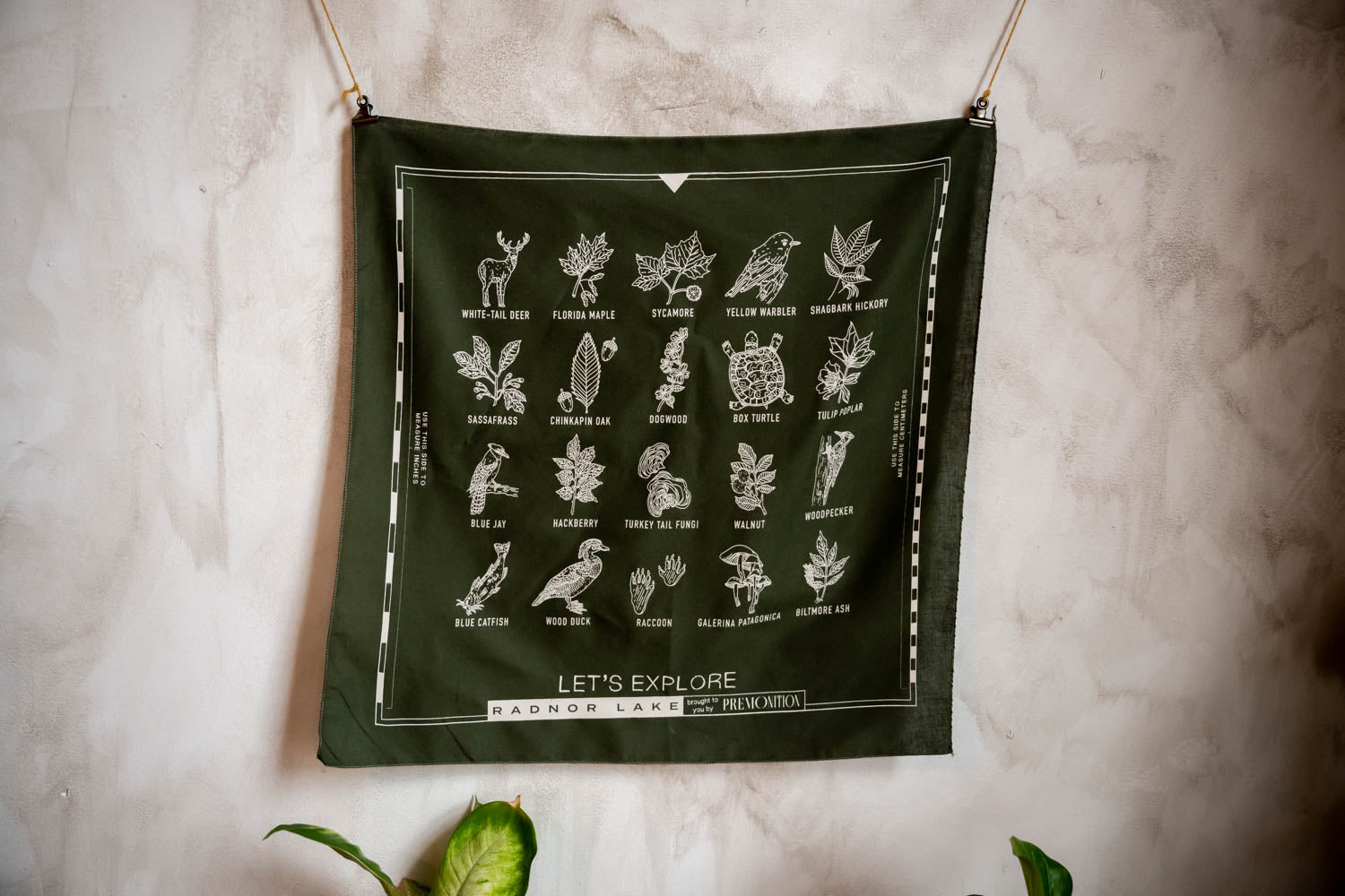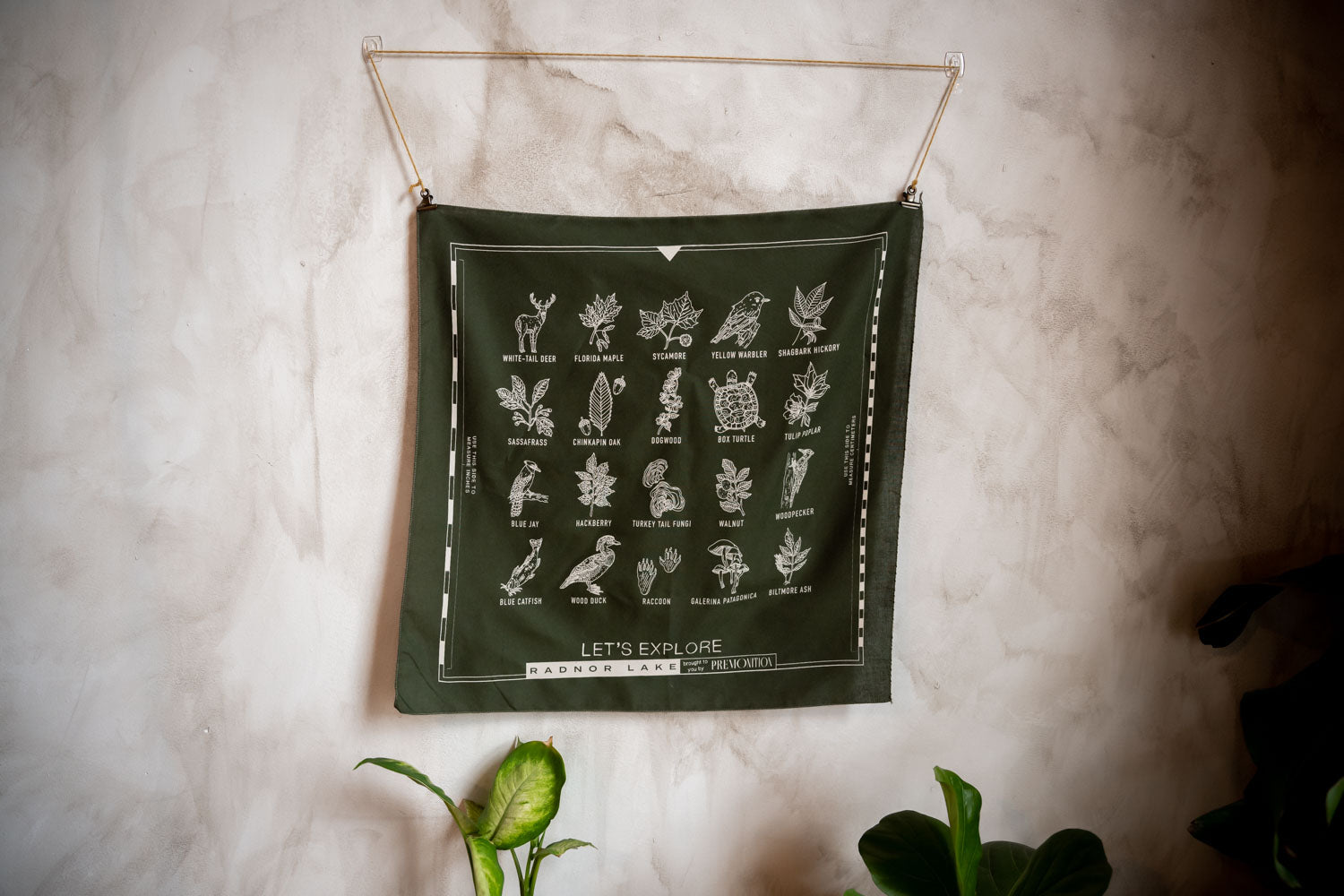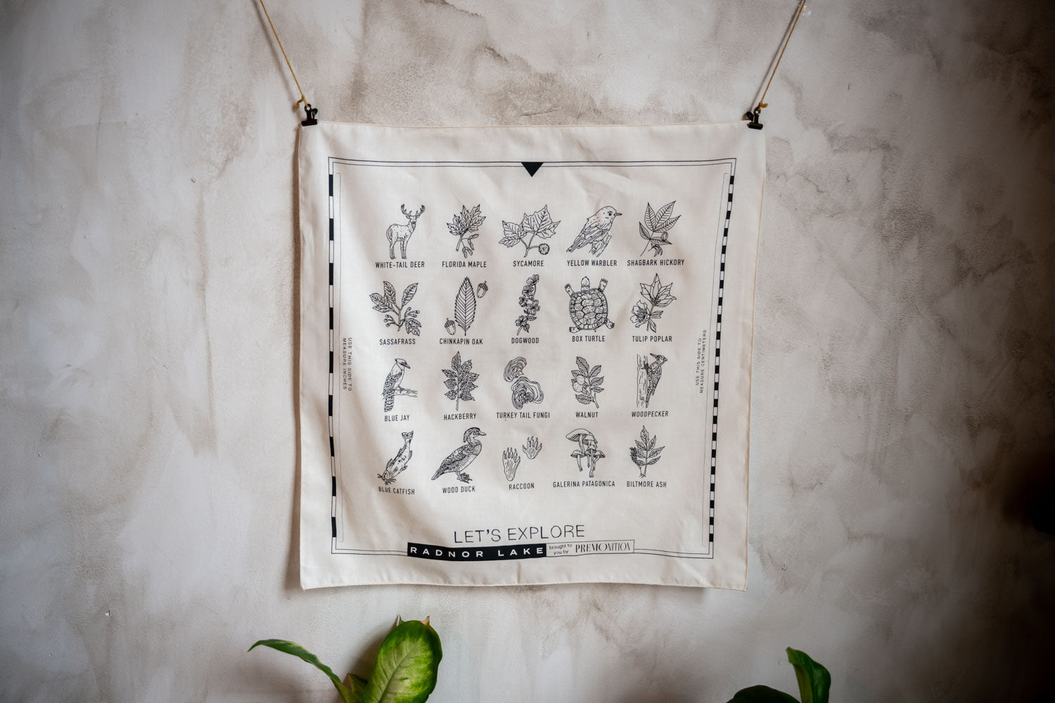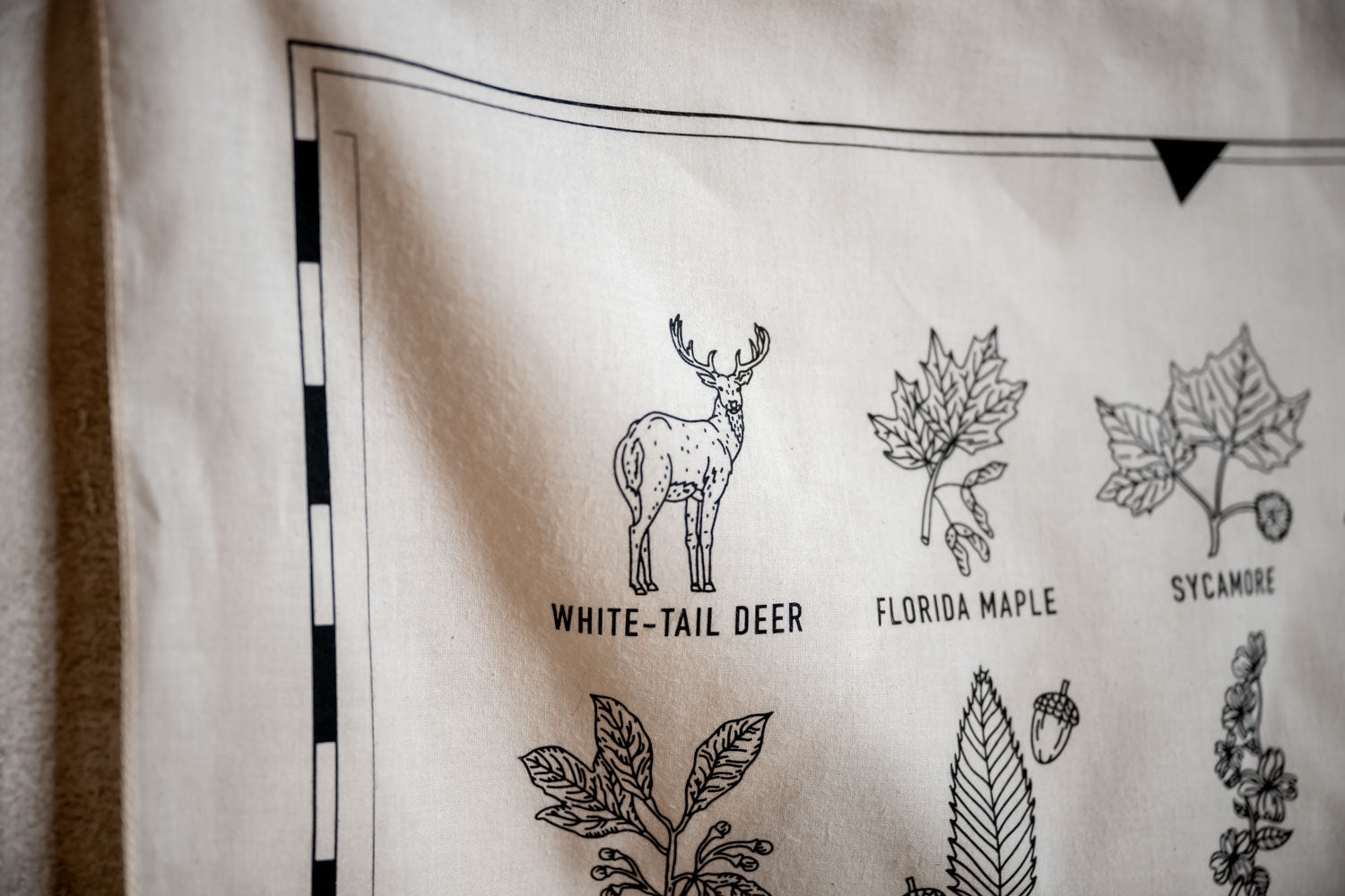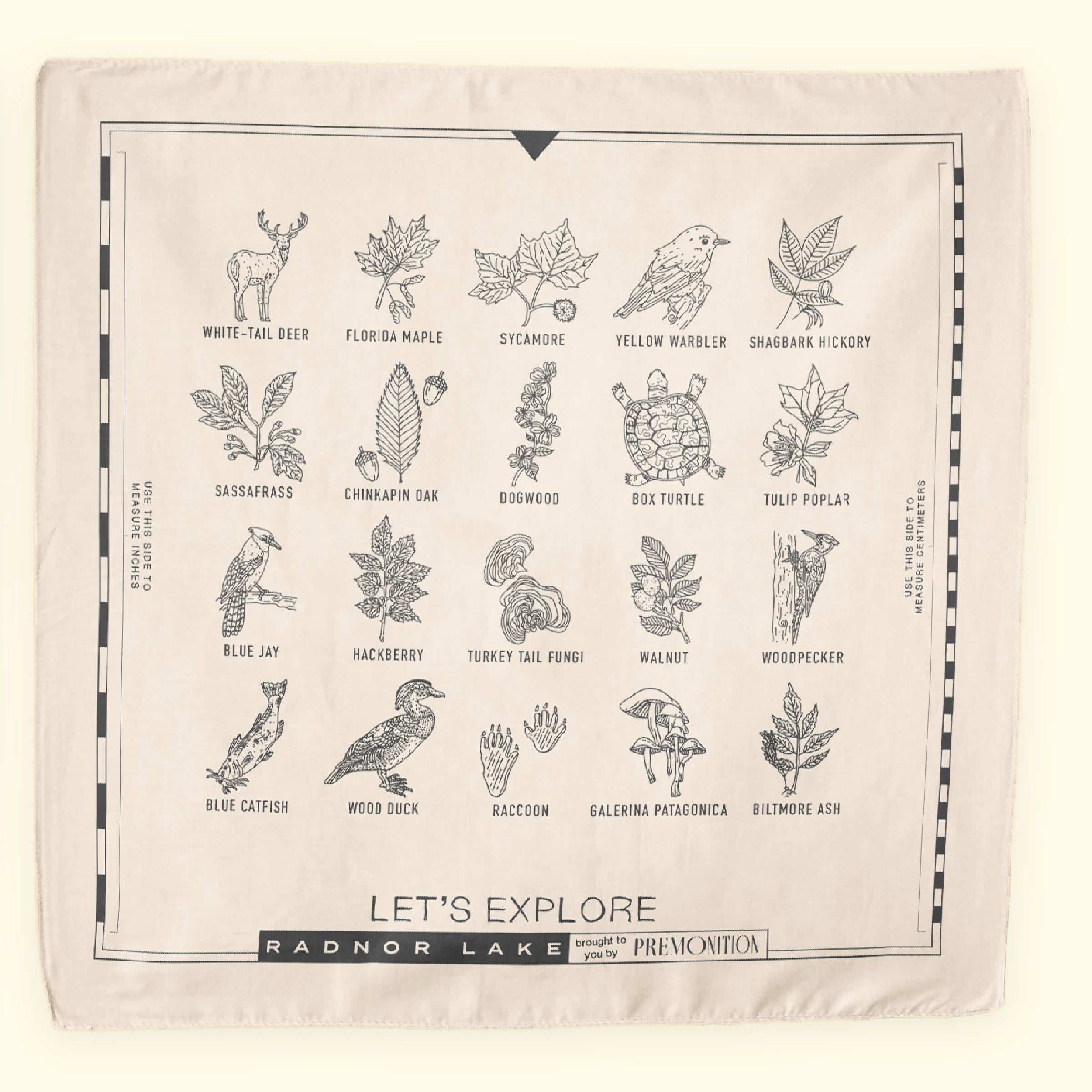 Having played a significant role throughout Hunter & Cameron's relationship, this design was created to pay homage to Radnor Lake State Park in Nashville. All creatures and foliage featured are commonly found in the park and can be used in a mini scavenger hunt as you explore the park together... or take it along wherever your own adventures may lead you. Don't miss out on the to-scale inch and centimeter rulers on the sides.