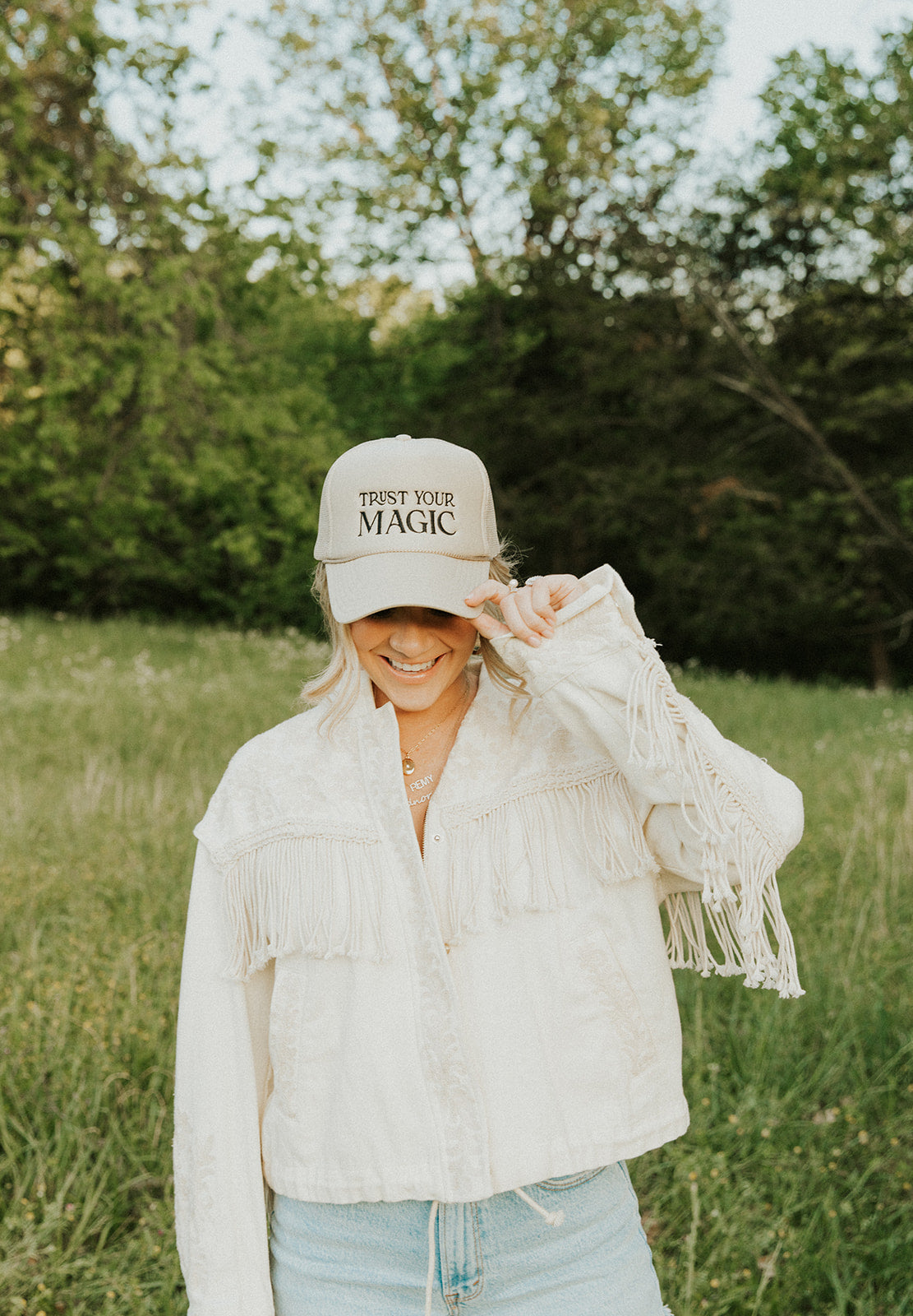 Introducing the Trust Your Magic Foam Trucker Hat. This hat is embroidered with the words "Trust Your Magic", a saying that we use often around here. Meant to inspire you to lean into that inner magic that makes you uniquely you.