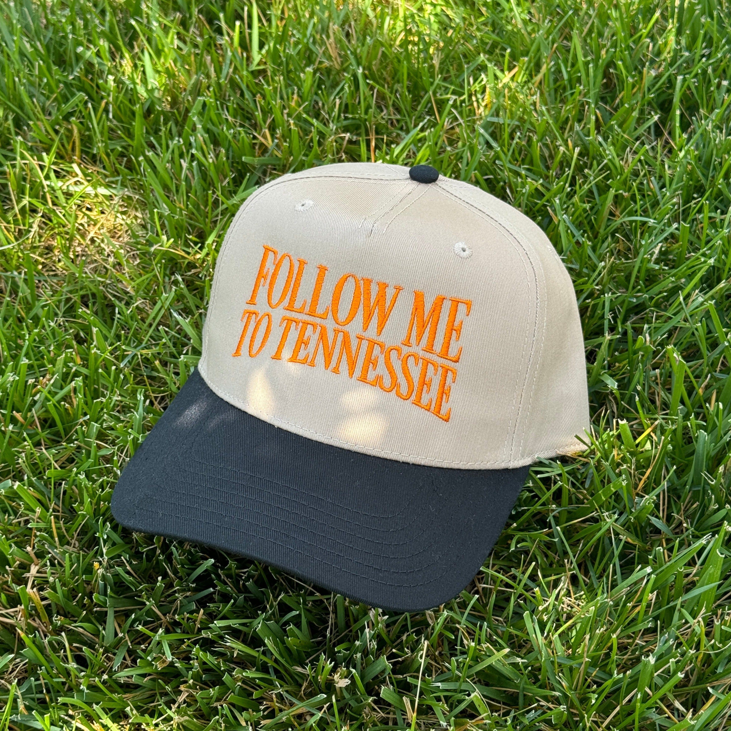Get ready to hit the road and explore the charm of Tennessee with our Follow Me To Tennessee Trucker Hat! Made from durable canvas, this trendy trucker hat features embroidered lettering that adds a touch of fun and personality to your look. Perfect for any adventure, this hat is sure to turn heads and be your new go-to accessory.