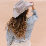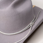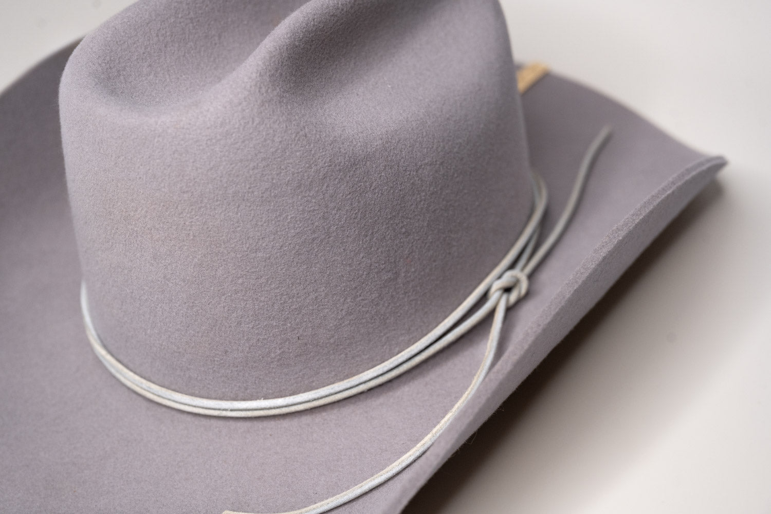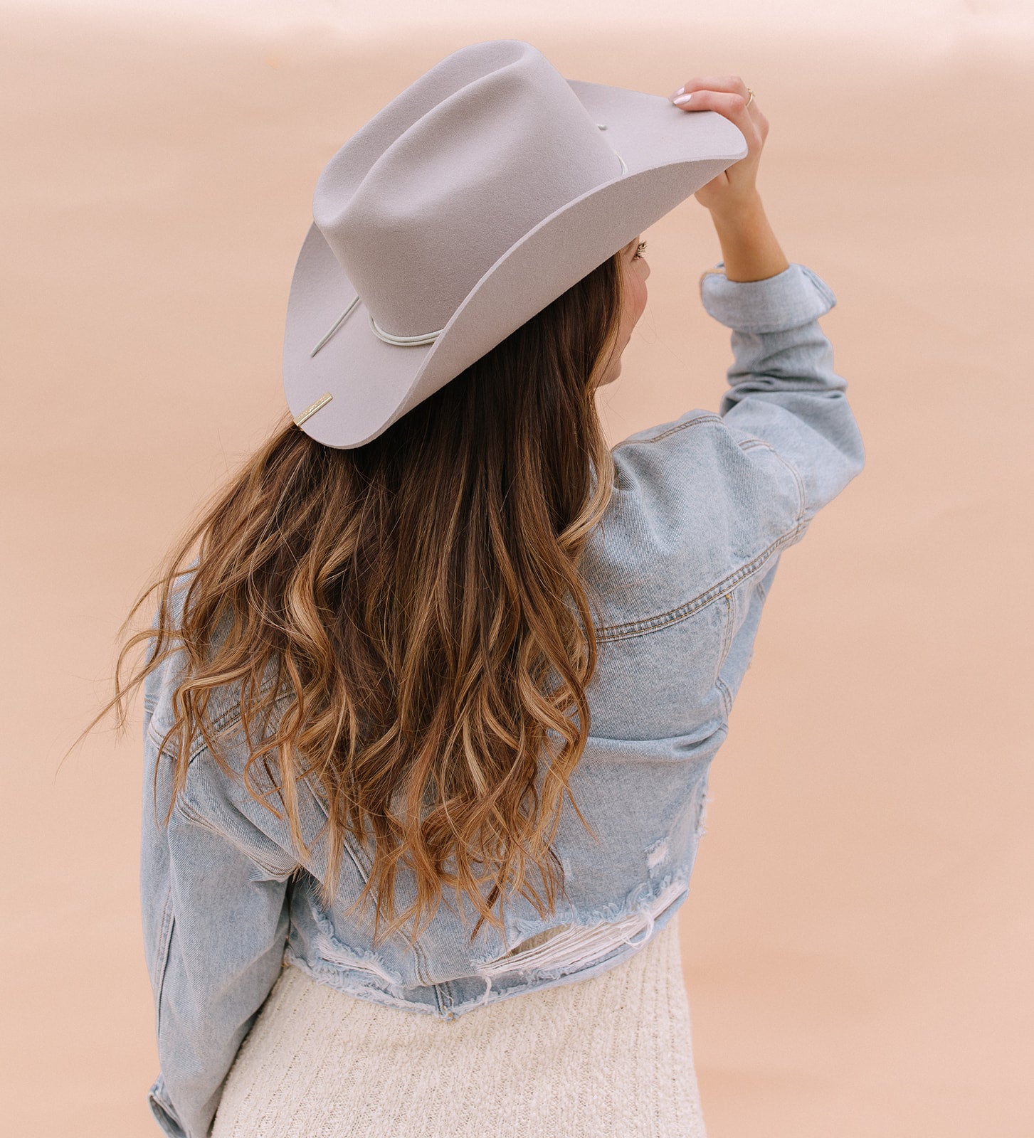 A Modern Cowboy Style in a light lilac grey color. Our hats are designed in Nashville and handmade in a small factory in Portugal. Each one is created with high-quality goods using low-impact materials. Made from Premium wool, this hat is made to last.