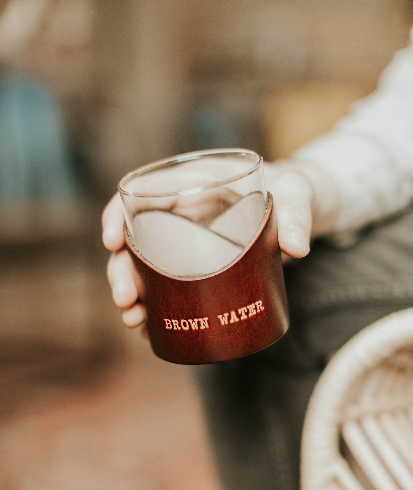 Handcrafted with genuine leather, this 12oz lowball glass is perfect for a drink by the fire with your favorite person. These glasses make the act of pouring a drink a little more special and also make the perfect gift. The leather wraps slide off the bottom for easy washing.