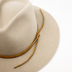 Each hat comes with a 14k gold-plated Premonition clip and band. These can be removed and/or styled to your liking. If the clip makes a dent in your hat, please refer to the hat care guide linked here.