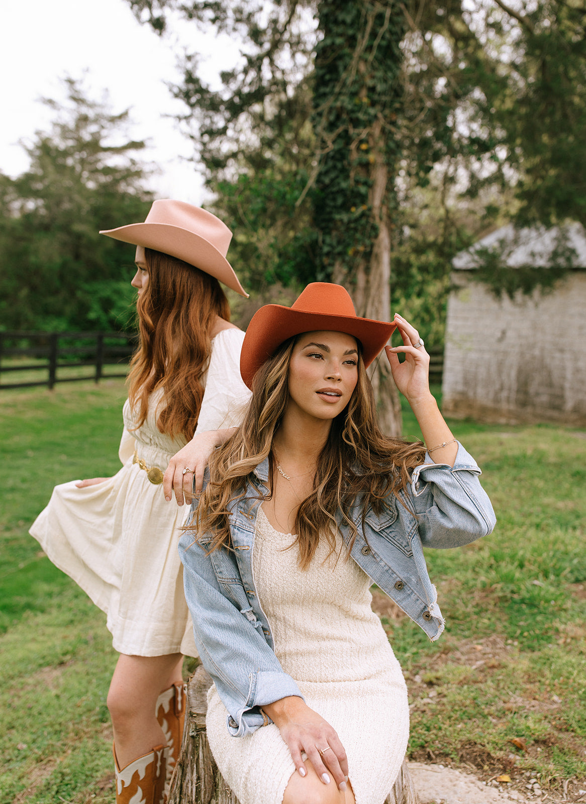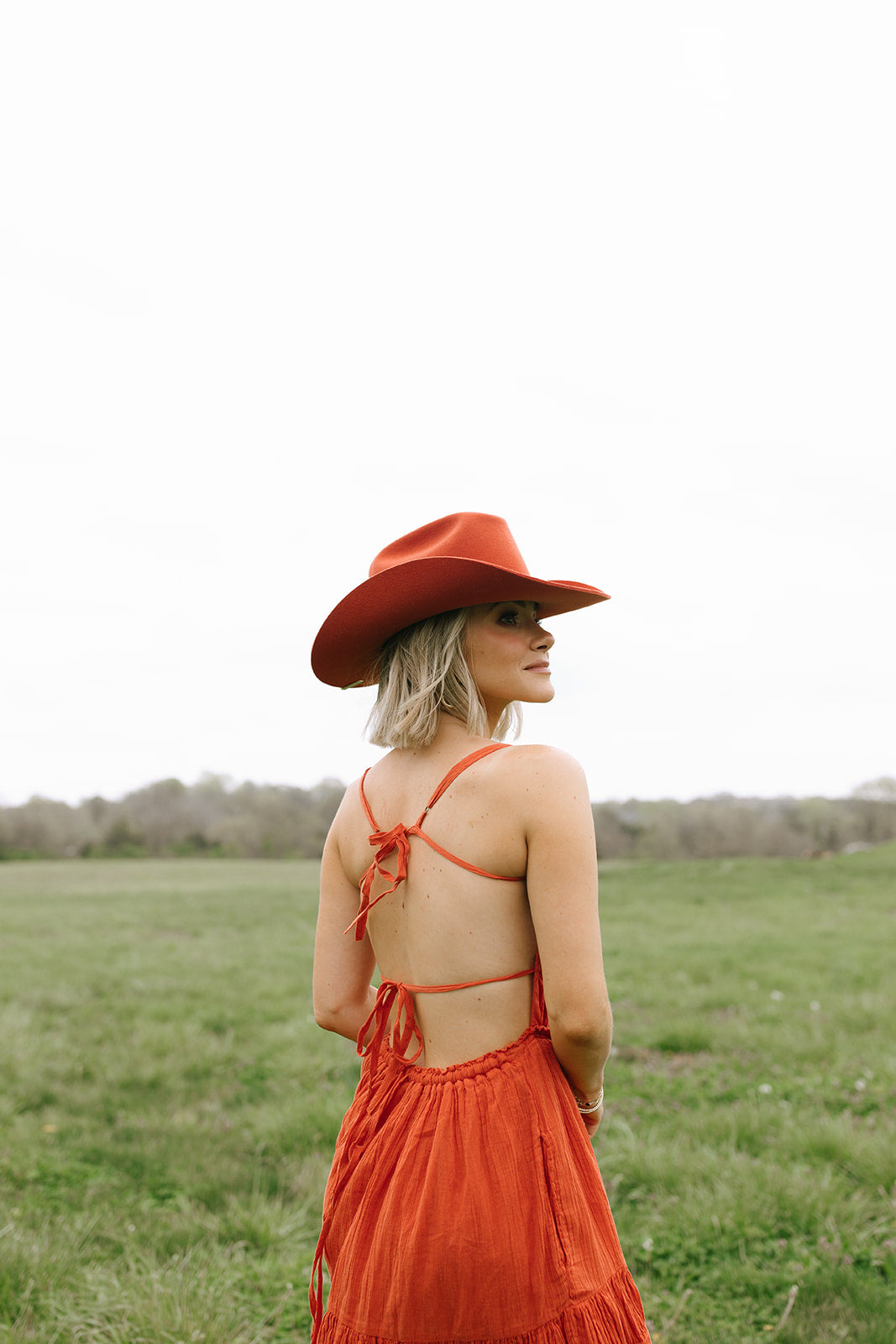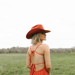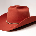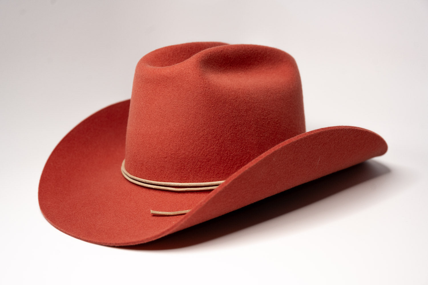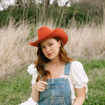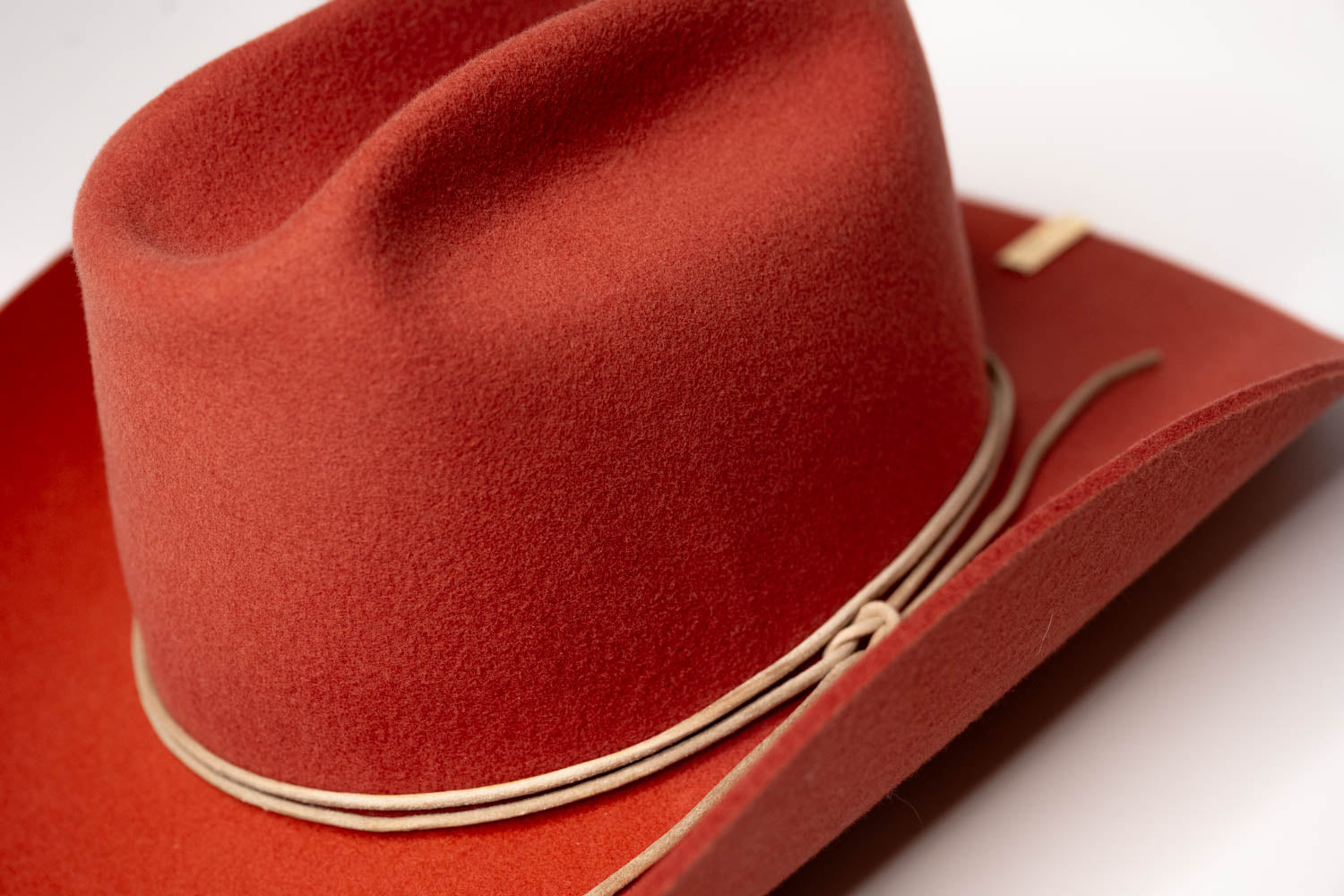 A Modern Cowboy Style in a red clay color. Our hats are designed in Nashville and handmade in a small factory in Portugal. Each one is created with high-quality goods using low-impact materials. Made from Premium wool, this hat is made to last.